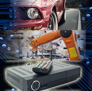 Figure 1: Ethernet PHYs are integrated into applications such as automotive diagnostics, robotic assembly lines and set-top boxes