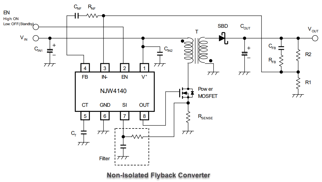 Nisshinbo NJW4140 Switching Regulator ICs for Boost / Flyback converter are integrated with a built-in highly effective N-channel MOSFET driving circuit. This built-in pulse-by-pulse current detecting type over-current protection limits the output current at over-load. The automotive NJW4140 switching regulator ICs feature wide input voltage ranging from 3V to 40V and wide oscillating frequency ranging from 40kHz to 1MHz. These Nisshinbo ICs are ideally used in automotive electronic control units (ECU) and industrial control equipment.Features
