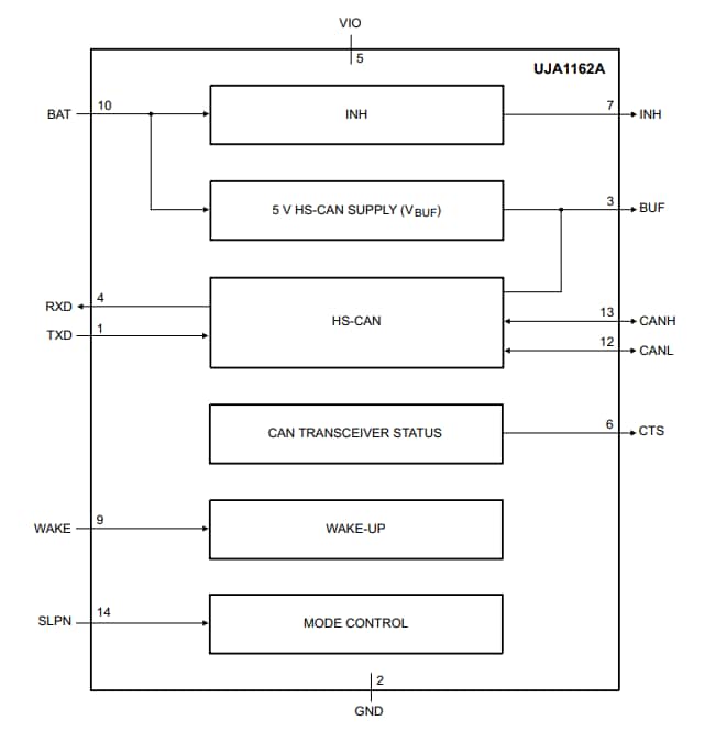 NXP Semiconductors UJA116xA Mini HS-CAN Transceivers offer a highly integrated solution with an HS-CAN interface housed in a small, leadless HVSON14 package. The UJA116xA variants provide options including a watchdog, an optional external 5V sensor supply, and partial networking support.