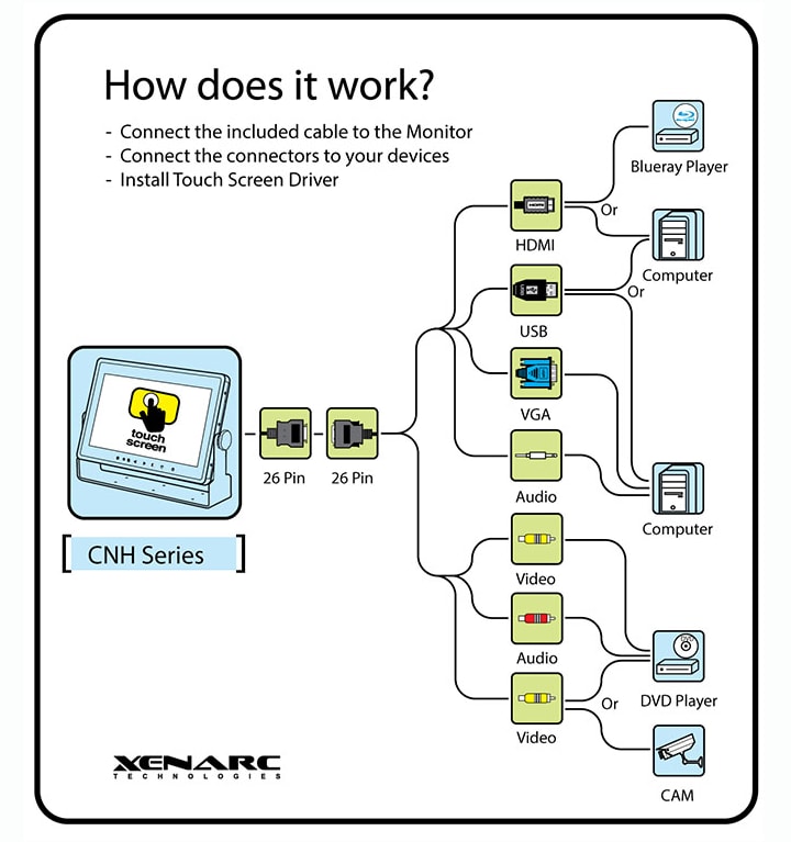 Xenarc Technologies 1029 Series 10.1" IP65 Water Resistant Monitors are direct sunlight readable, IP65 dust/splash-proof, and feature capacitive touchscreens with built-in waterproof speakers. The 1,000 NIT rated brightness of the water and dust resistant 1029 Series makes it ideal for challenging outdoor applications under direct sunlight and protects from environmental hazards.The Xenarc 1029 Series capacitive touchscreen panel provides a more responsive touch interface than resistive touch. The rugged, heavy-duty 10.1" industrial monitor is available with optical bonding and an IP67 rating as the 1029GNH.